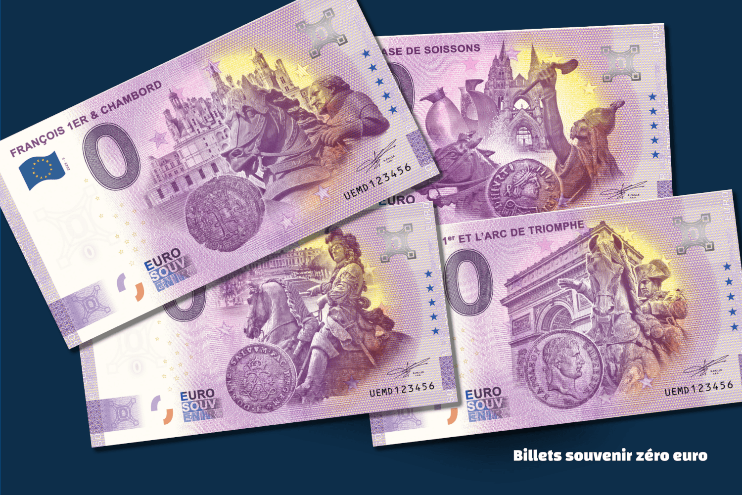 Créer une collection de billets touristiques à collectionner sur le thème des Rois et monuments. Création de la maquette déclinable, préparation de fichier pour l’impression avec le spécialiste du sujet, fabrication française. Pour le clients eMonnaies, en exclusivité.