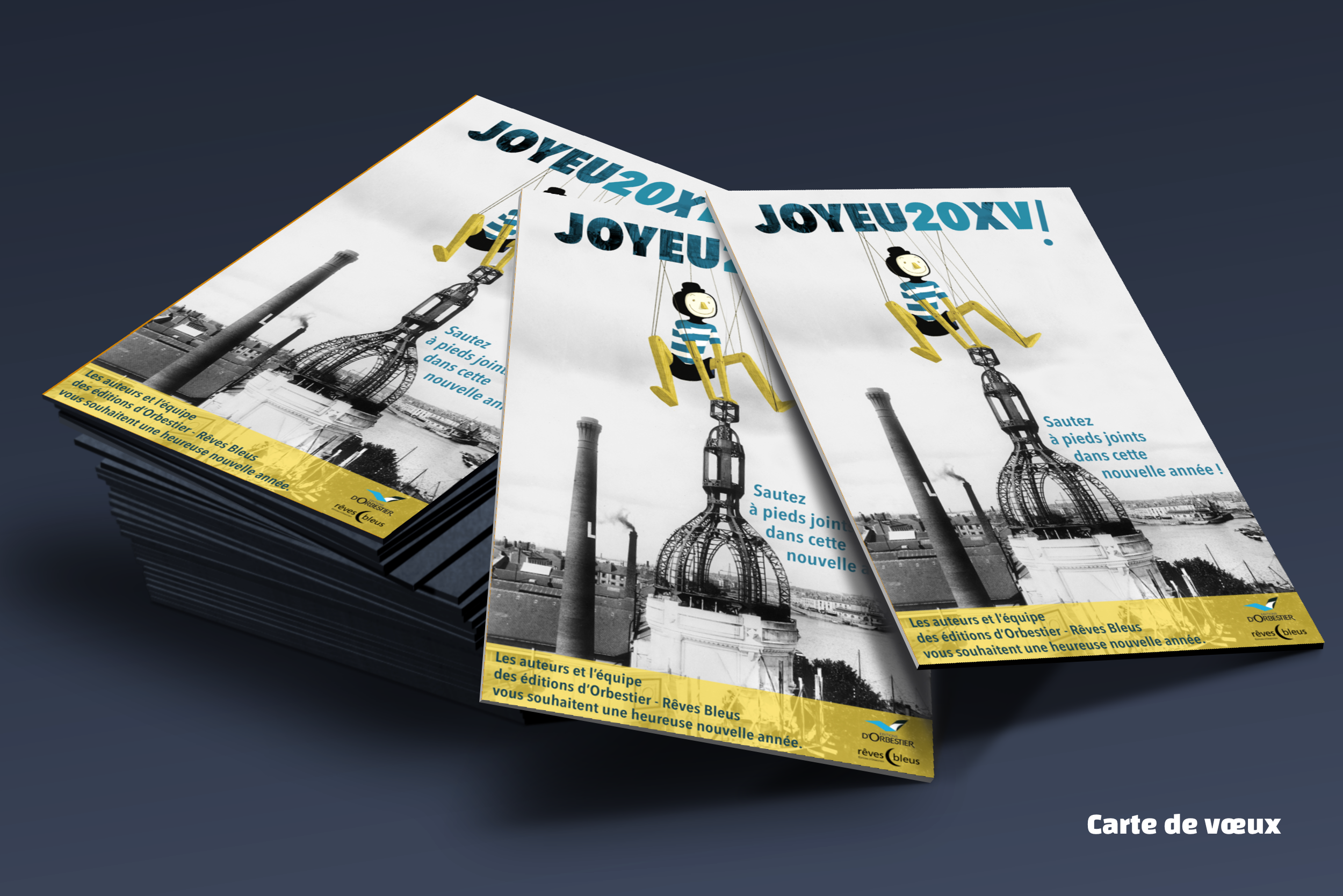 Créer une carte de vœux pour l’année 2015 inspirée des deux livres importants à venir dans l’année pour la maison d’éditions D’Orbestier.