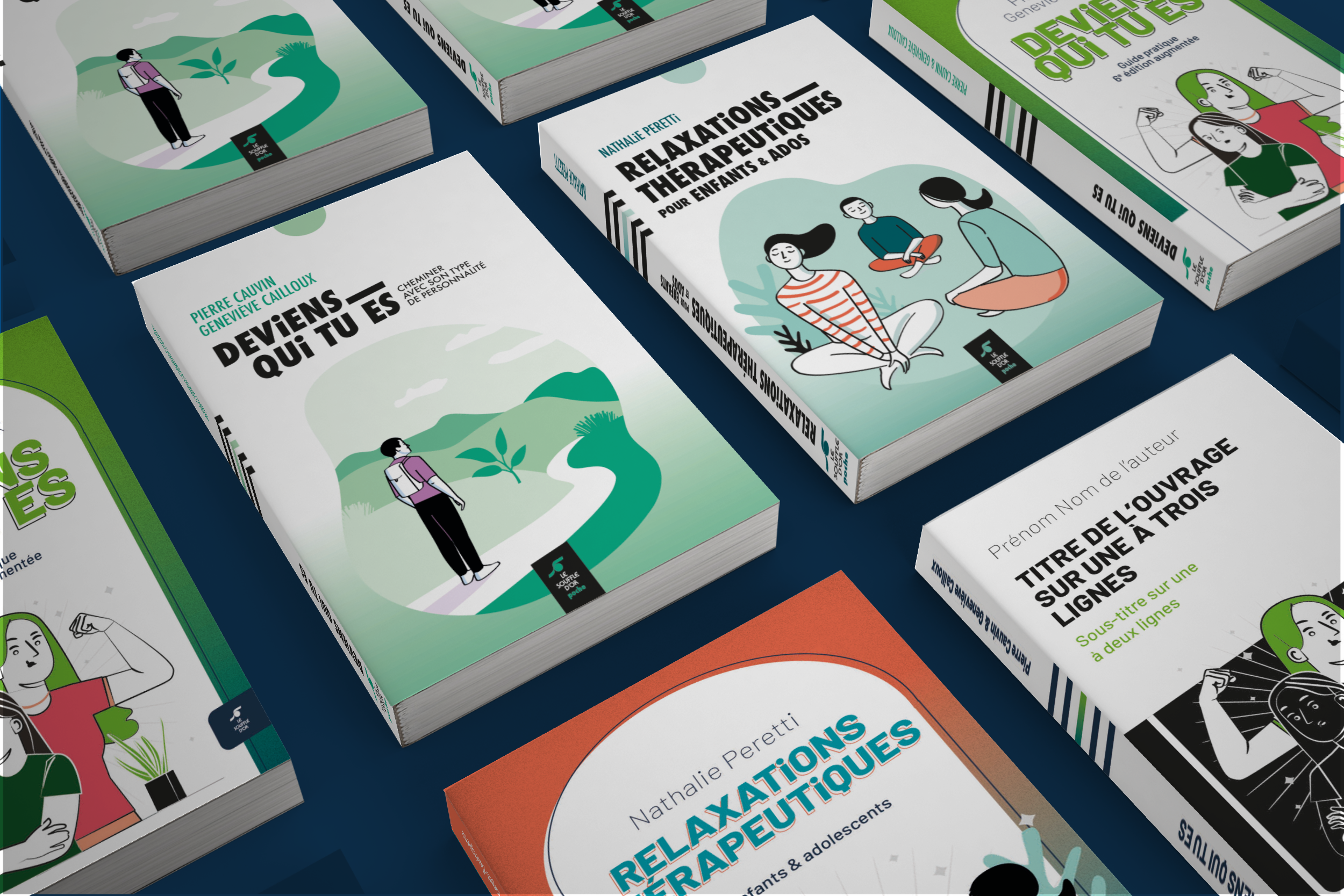 Créer une maquette de couverture pour une collection de livres de poche, avec le premier titre Deviens qui tu es .et le seconde Relaxations thérapeutiques pour enfants et ados. Créer aussi la maquette de pages intérieures. Pour les éditions Le Souffle d’Or avec l’illustratrice Valérie Leblanc.