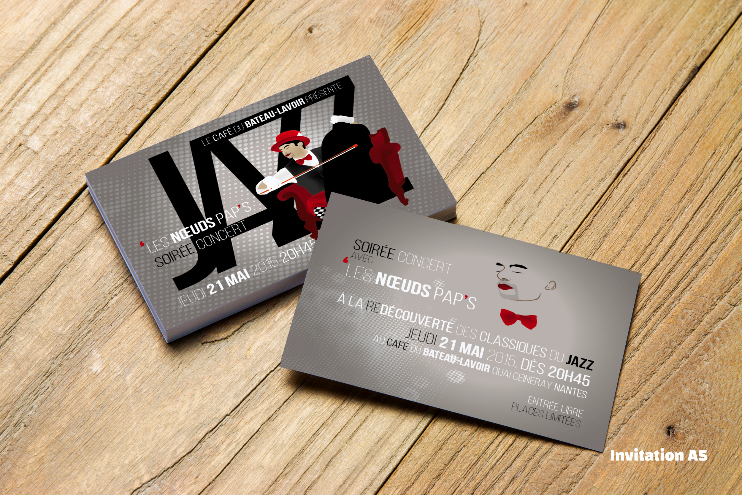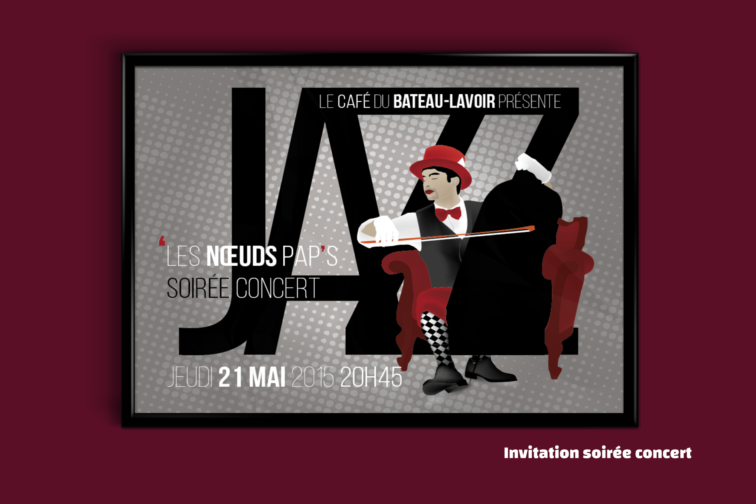 Créer une invitation pour une soirée concert jazz, dessin 100% vectoriel pour s’adapter aussi en affiche.