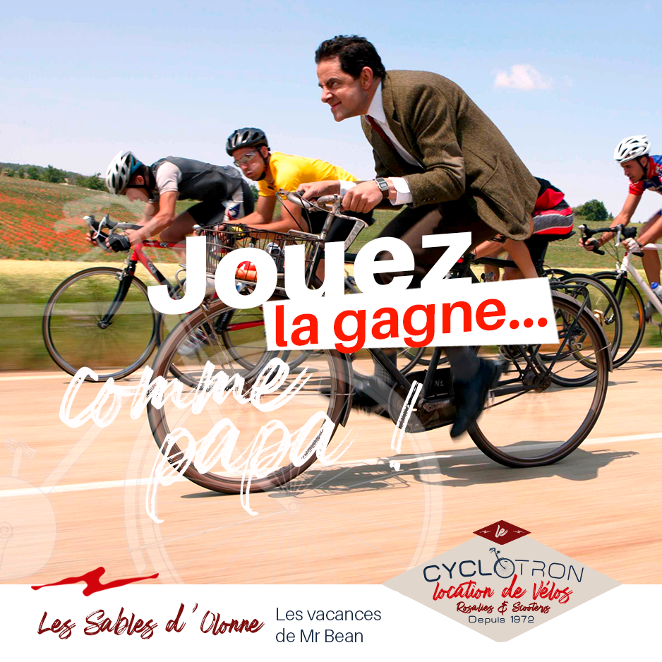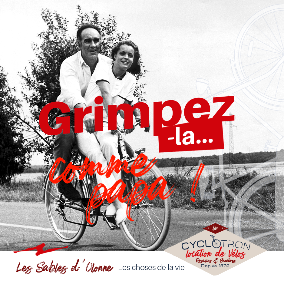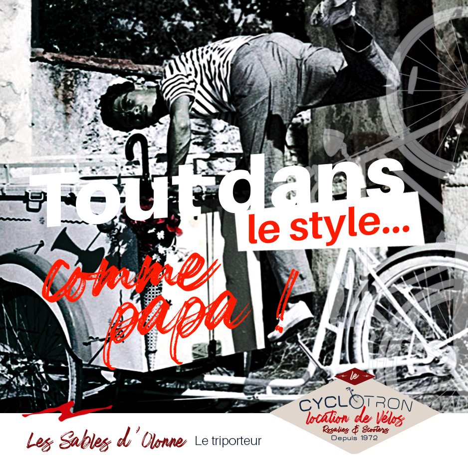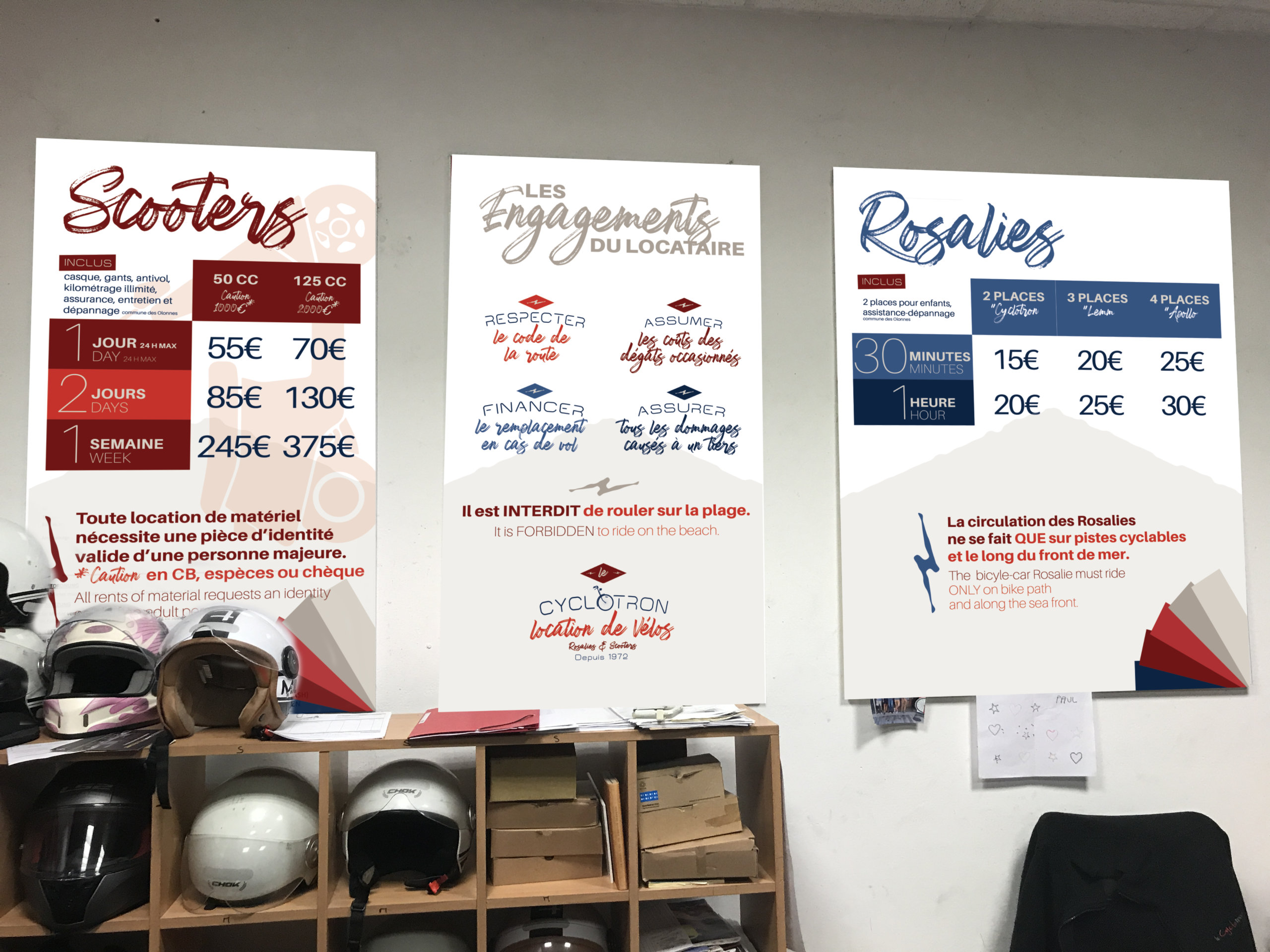 Refonte d’identité graphique modernisée & funky pour Le Cyclotron. Afficher fortement le mot location, préciser également scooters et Rosalies.