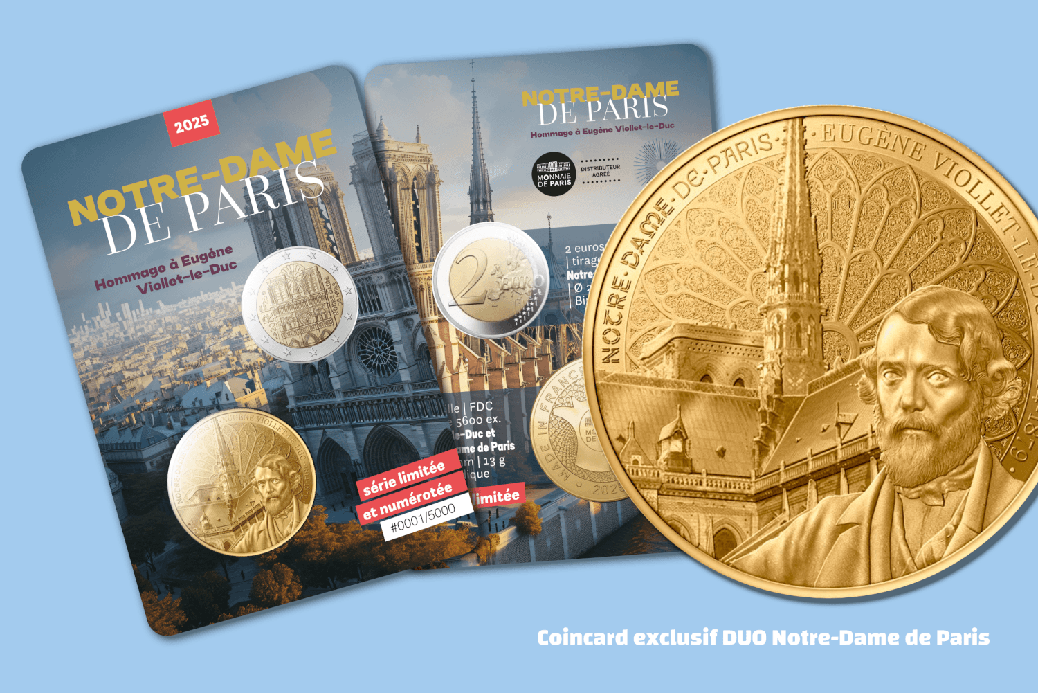 Créer une médaille thématique pour l’associer à une pièce de deux euros commémorative de La Monnaie de Paris. Créer le packaging avec une ambiance de collection. Développer le moule et gérer la fabrication en Italie. En exclusivité pour eMonnaies.