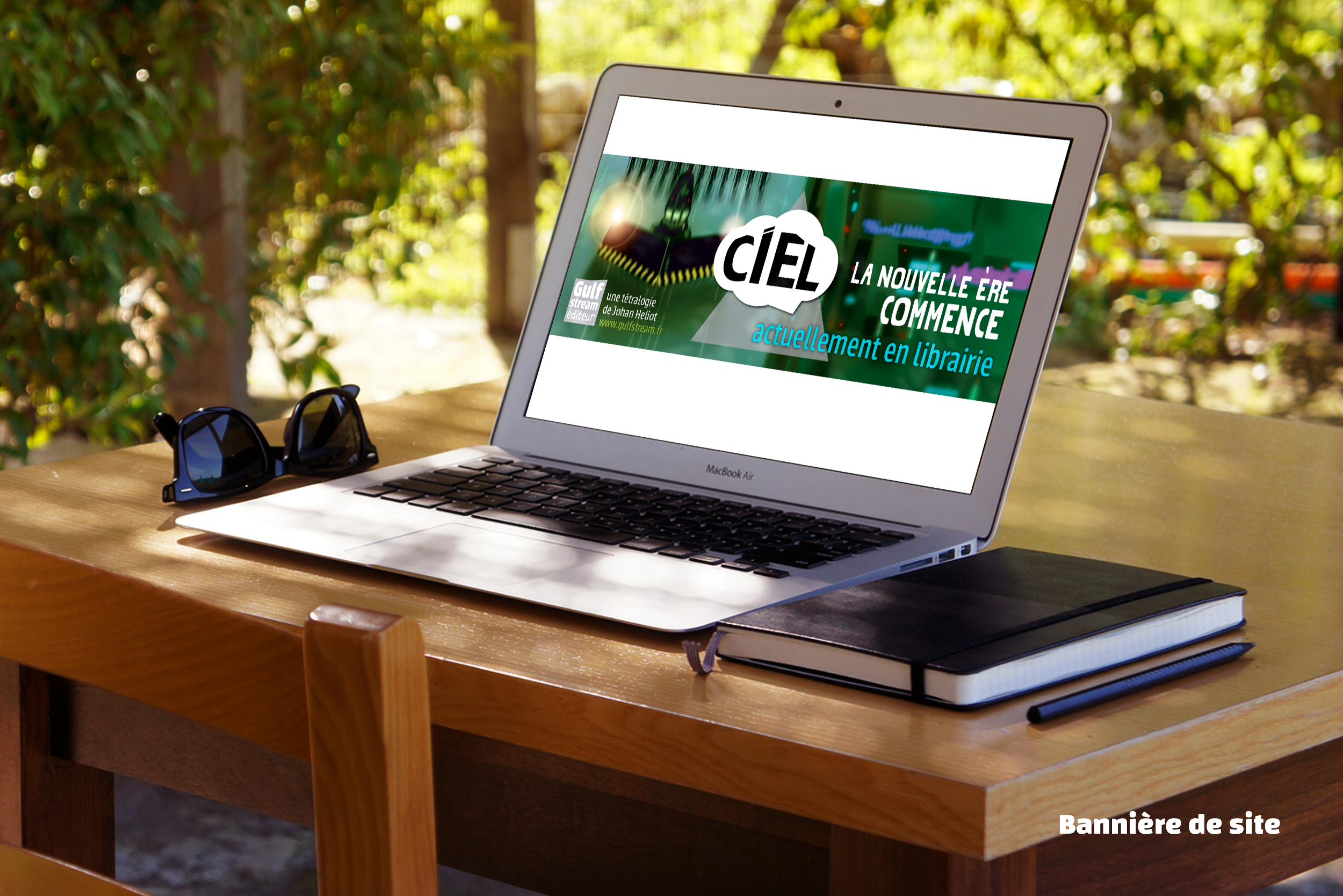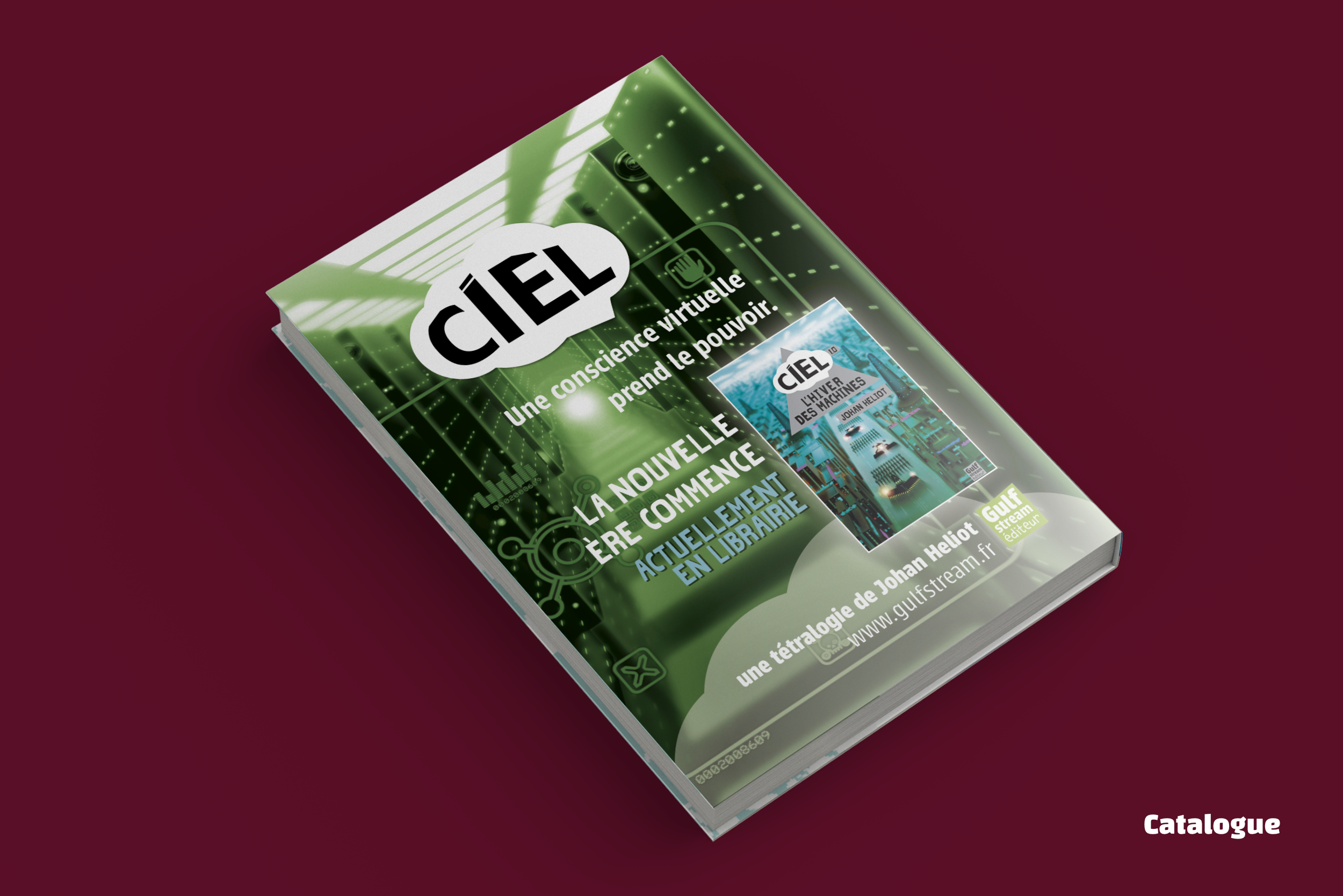 Créer une quatrième de couverture et une bannière pour annoncer la parution du livre « CIEL » en trilogie, chez Gulfstream éditeur.